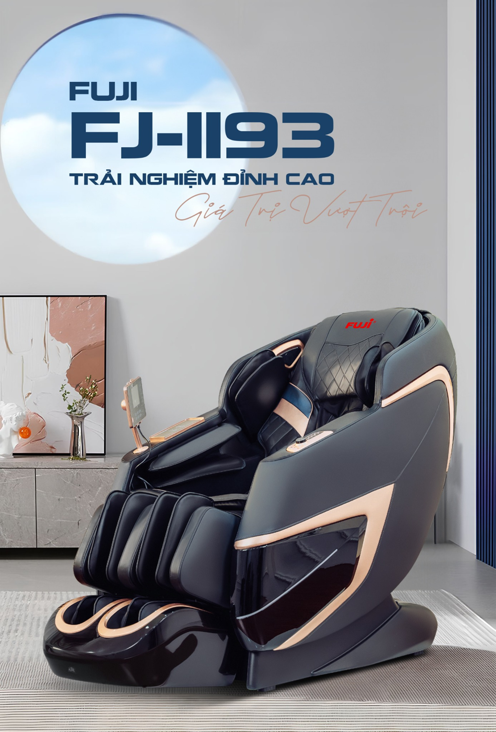 Ghế massage Fuji FJ-1193 không chỉ mang lại trải nghiệm thư giãn tối ưu mà còn giúp cải thiện sức khỏe toàn diện. Hãy sở hữu ngay một chiếc ghế massage phổ thông Fuji FJ-1193 để chăm sóc sức khỏe và thư giãn sau những giờ làm việc căng thẳng. Liên hệ ngay Hotline 1800 1132 để nhận được nhiều ưu đãi hấp dẫn!