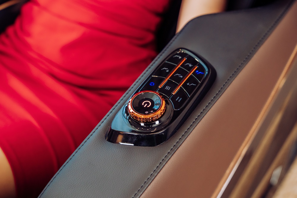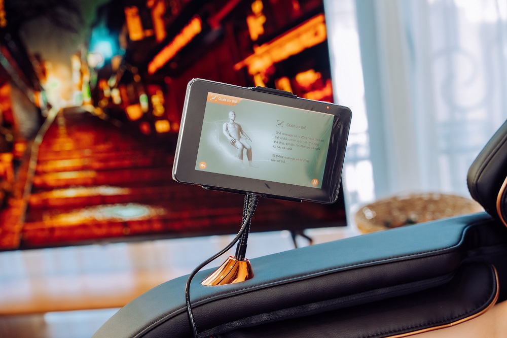 Ghế massage Fuji FJ-35 nổi bật với bộ ba điều khiển thông minh, mang đến sự tiện lợi tối ưu cho người dùng. Đầu tiên, màn hình cảm ứng hiện đại cho phép người dùng dễ dàng lựa chọn và điều chỉnh các chế độ massage chỉ bằng vài thao tác chạm.