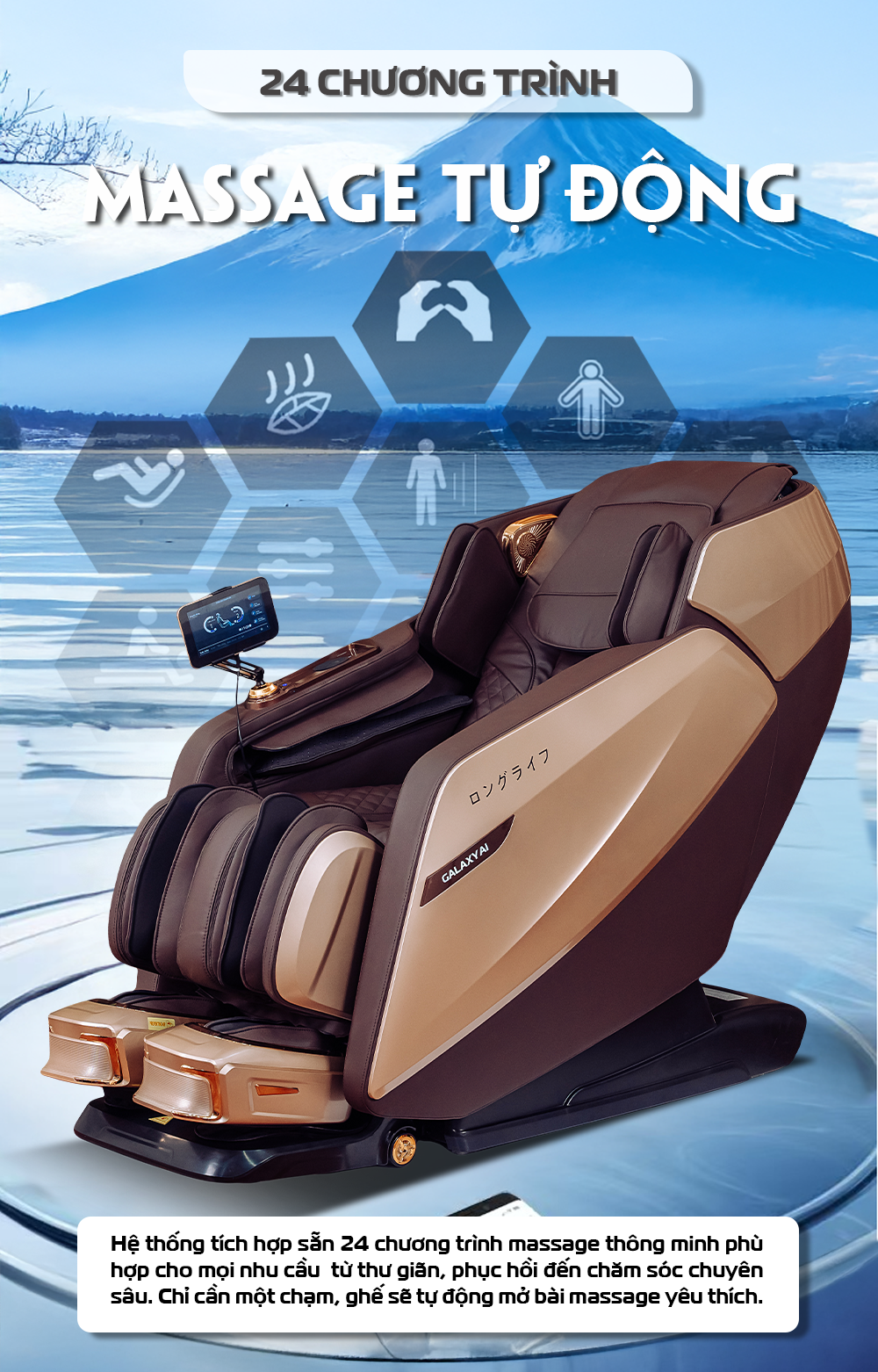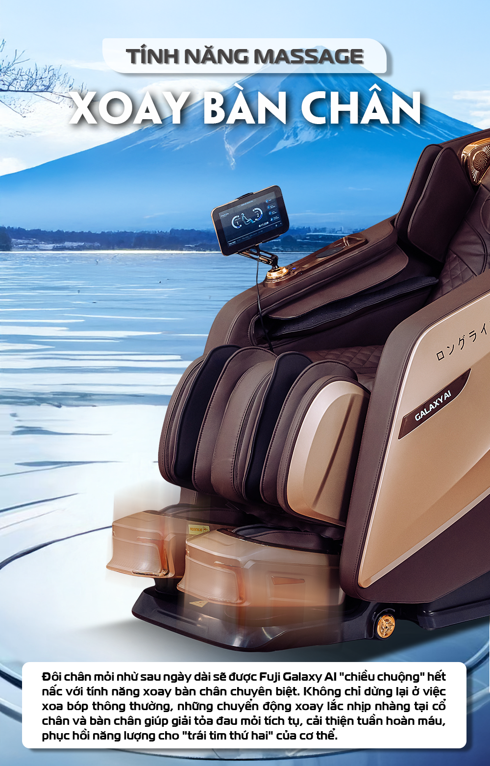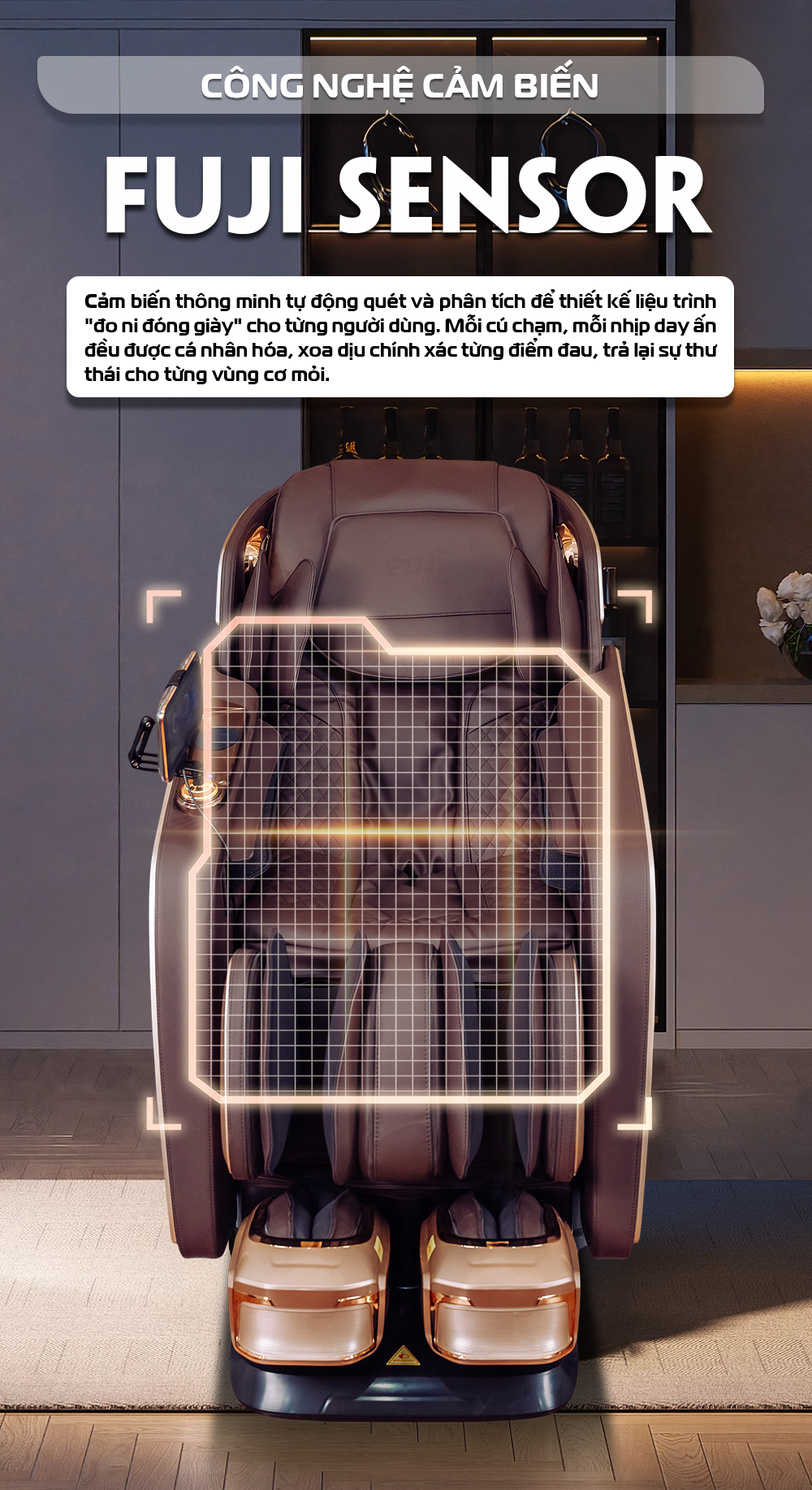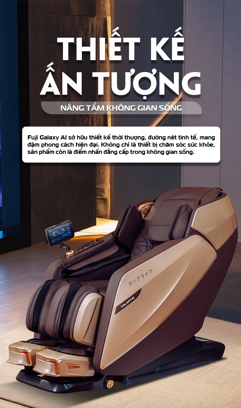 Không chỉ là một chiếc ghế massage, Fuji Galaxy AI là người bạn đồng hành "thấu hiểu" cơ thể bạn đến từng milimet. Với công nghệ trí tuệ nhân tạo đột phá, Fuji Galaxy AI không chỉ lắng nghe mà còn "đọc vị" mọi nhu cầu của người dùng qua từng chuyển động. Mỗi cú chạm, mỗi nhịp day ấn đều được cá nhân hóa, xoa dịu chính xác từng điểm đau, trả lại sự thư thái cho từng vùng cơ mỏi. Đừng bỏ lỡ cơ hội trải nghiệm các tính năng massage nâng cấp và nhận những ưu đãi đặc biệt tại showroom Fuji gần nhất!