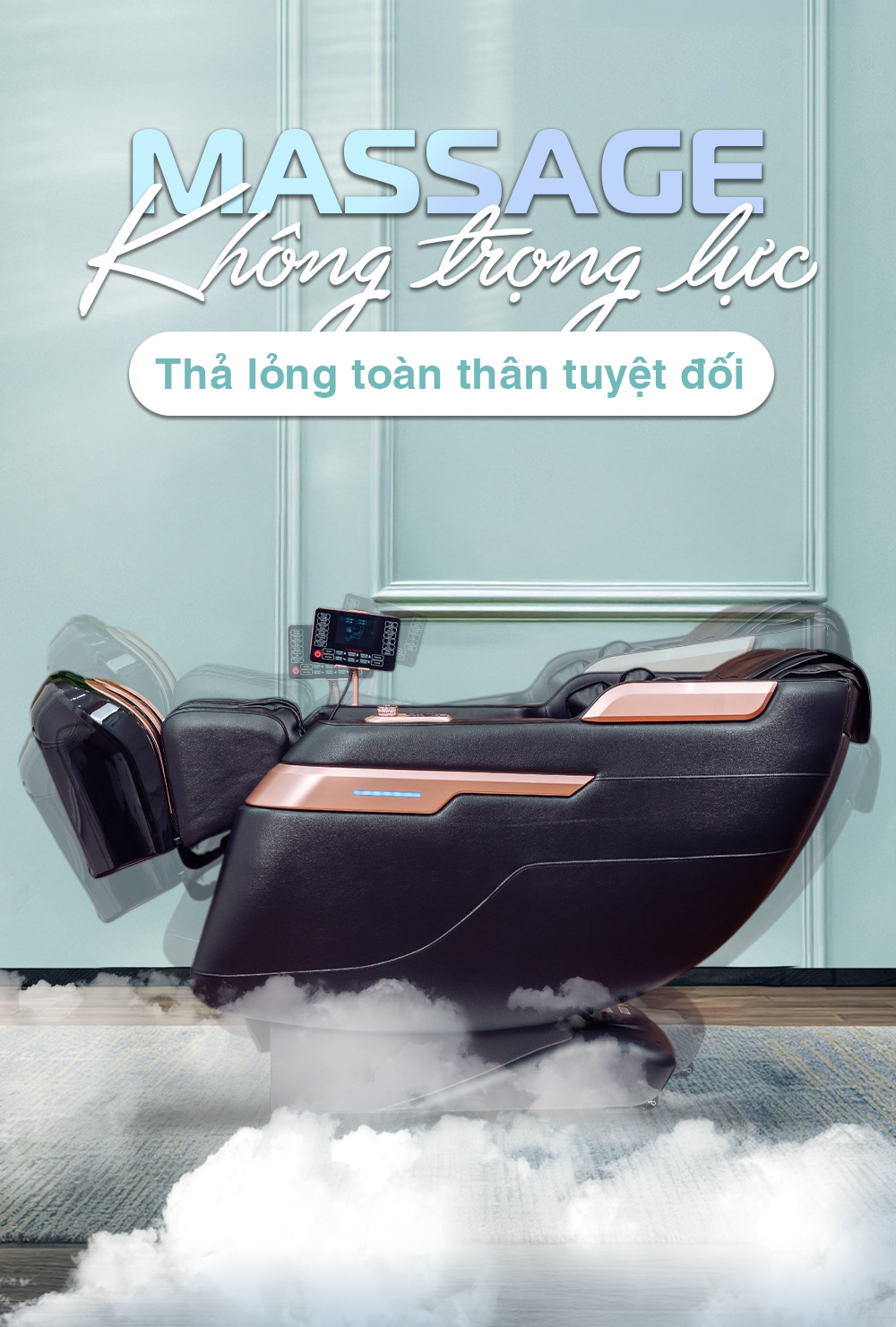 Trải nghiệm cảm giác thư giãn tuyệt đối như đang lơ lửng trong không gian với chế độ massage không trọng lực. Ở chế độ này, ghế sẽ ngả ra sau một góc lý tưởng, đưa cơ thể về tư thế thư giãn nhất, giúp giảm áp lực lên cột sống, cho bạn cảm giác thư giãn, thoải mái tối đa.