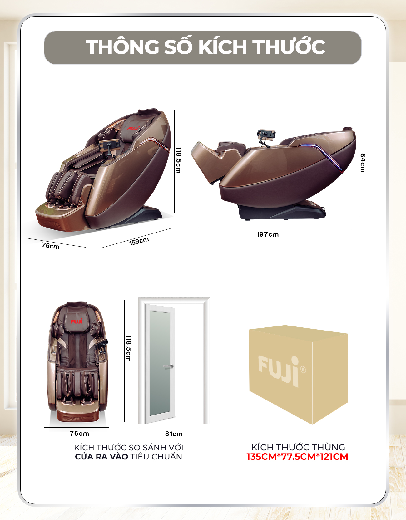 | Kích thước đứng (Dài, rộng, cao) | 159*76*118.5cm |