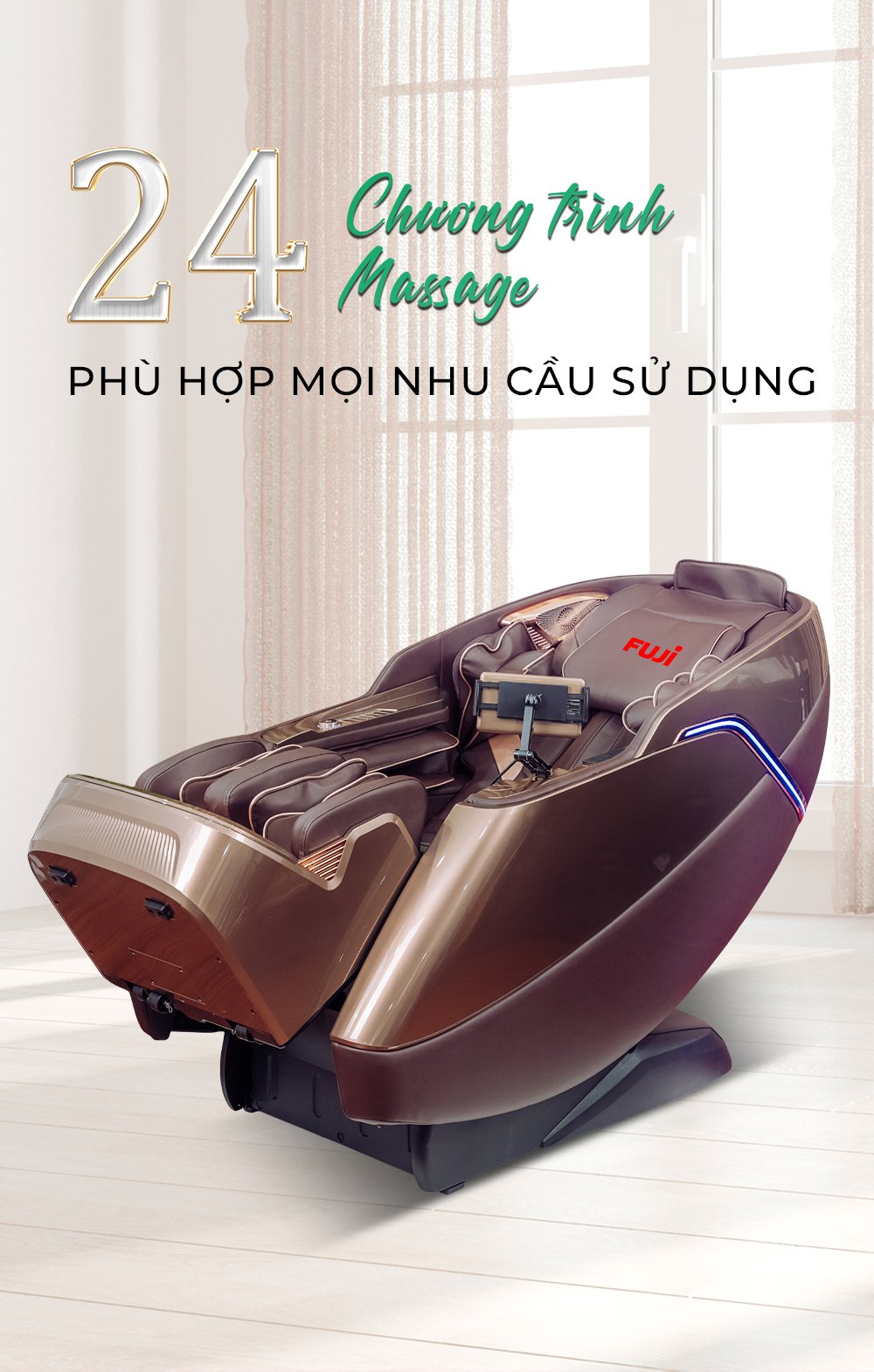 Sau một ngày dài mệt mỏi, không gì tuyệt vời hơn mỗi phút giây thư giãn trọn vẹn cùng ghế massage Fuji V7. Thiết kế sang trọng, chất liệu cao cấp cùng những tính năng thông minh sẽ mang đến cảm giác êm ái, vỗ về cơ thể bạn, giúp giảm căng thẳng, xua tan đau nhức và phục hồi năng lượng hiệu quả. Fuji V7 không chỉ là ghế massage, mà còn là người bạn đồng hành chăm sóc sức khỏe mỗi ngày. Liên hệ ngay với Fuji để nhận tư vấn về sản phẩm!