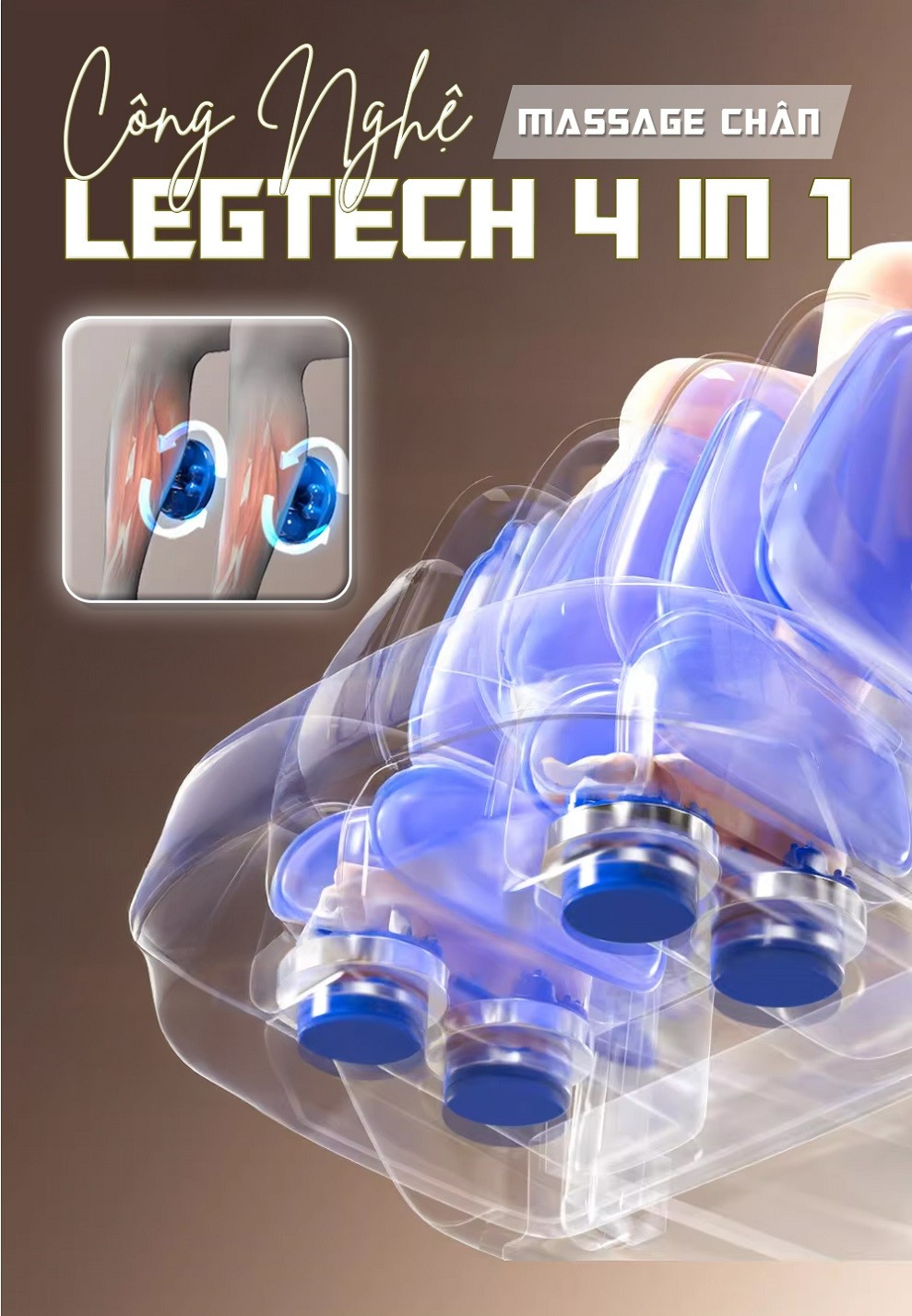 • Công nghệ massage Legtech 4-in-1