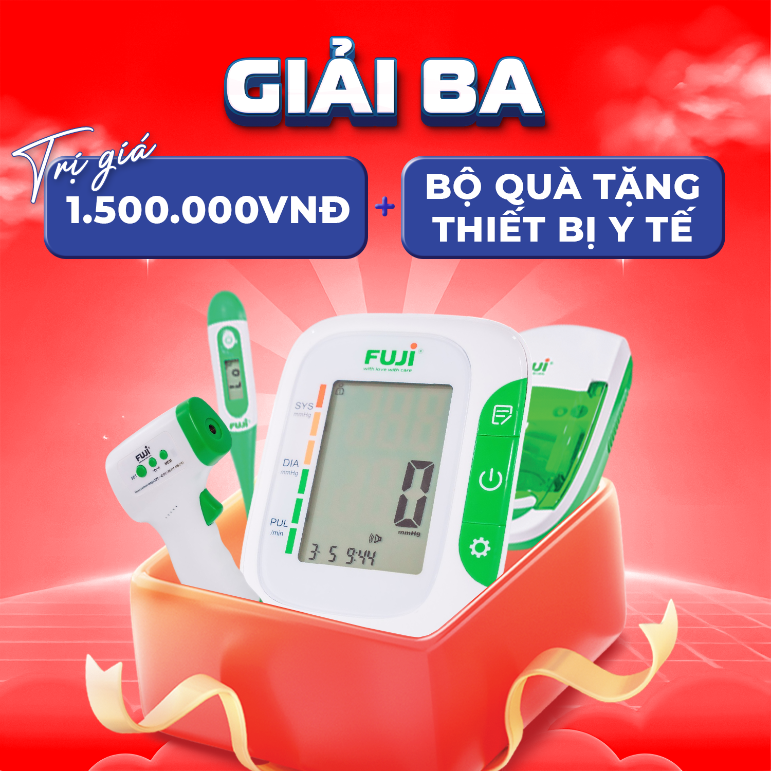 03 Giải Ba: 1.500.000VNĐ + Bộ quà tặng thiết bị y tế (trị giá 2.625.000 VNĐ)