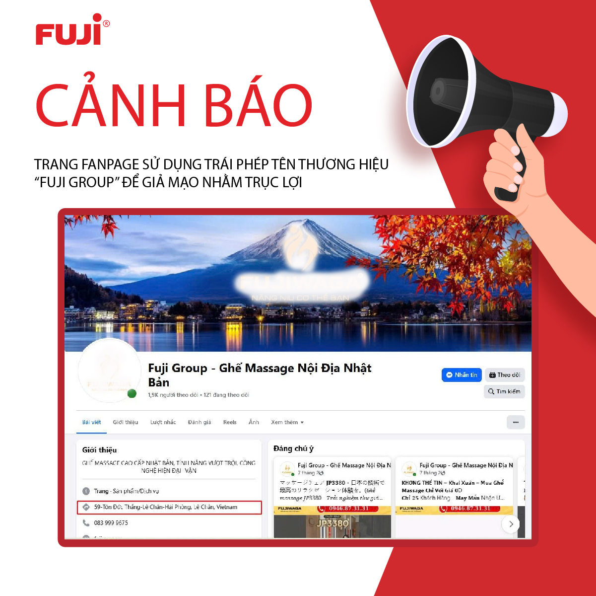 Với nhiều năm khẳng định chất lượng tại Việt Nam, FUJI đã trở thành một trong những thương hiệu ghế massage uy tín hàng đầu. Chính sự tin tưởng của người tiêu dùng lại bị kẻ gian lợi dụng: nhiều đối tượng cố tình tạo ra tên gọi “na ná” để khiến người mua lầm tưởng rằng đây là sản phẩm chính hãng FUJI.